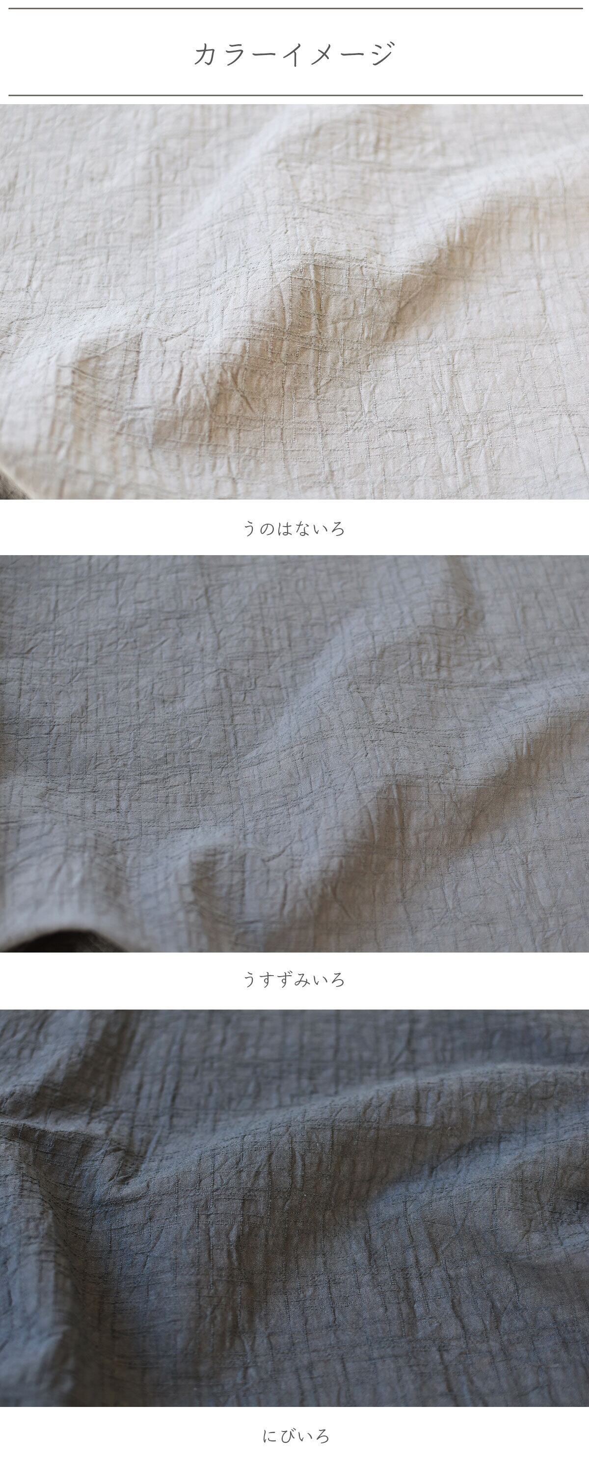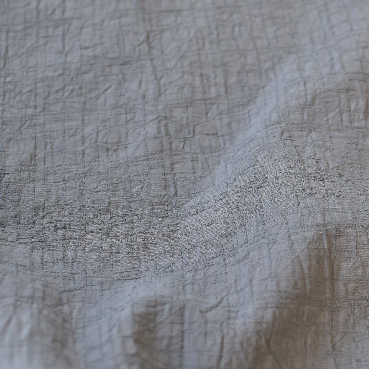 ほど良い厚みと織模様に手もみ風のシワ加工を施すことで、まるで洗いざらしのような心地よさが生まれました。