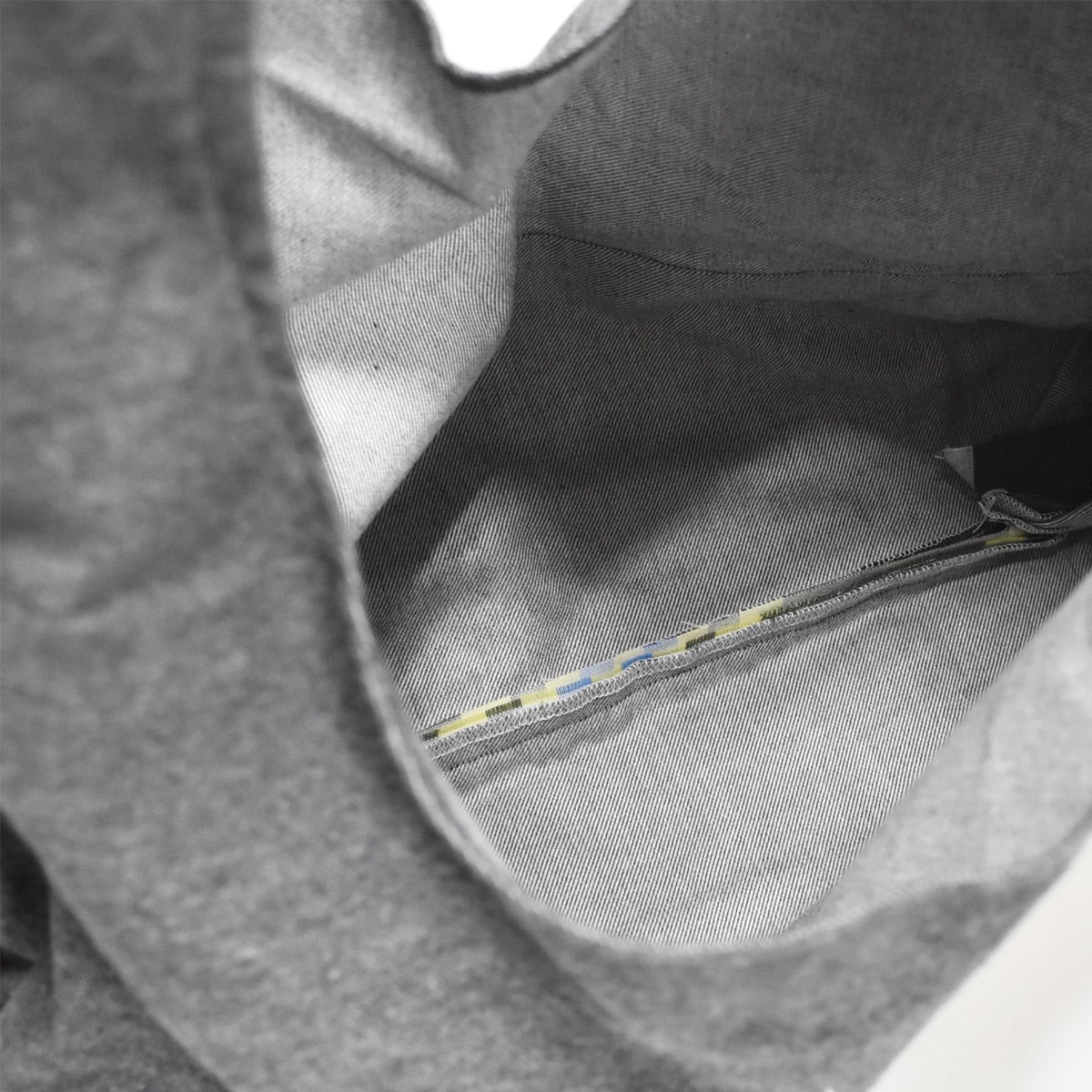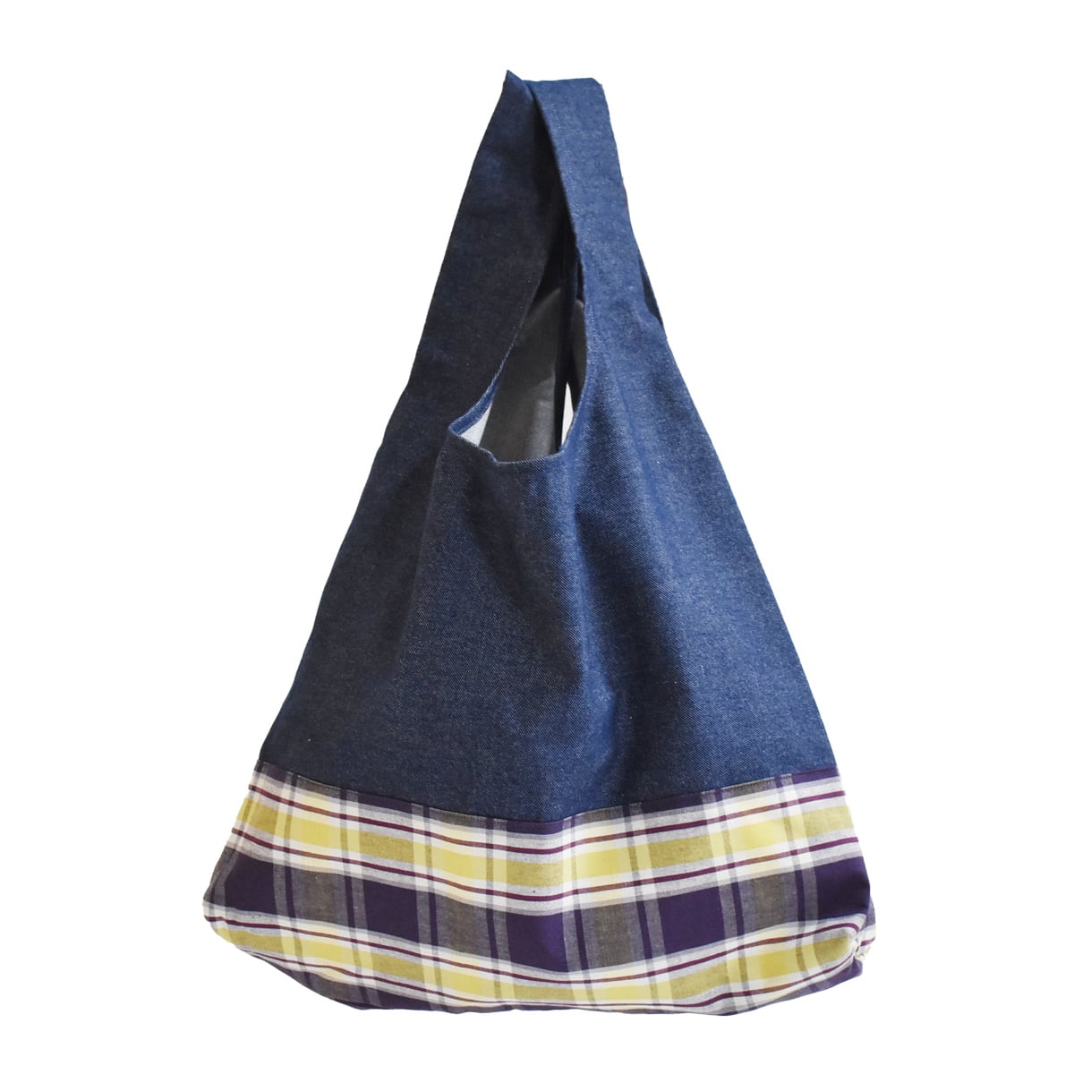 日本製のマルシェバッグはデニム調の生地を採用し、スタイリッシュで使いやすいデザインが特徴です。底部には三重の伝統工芸品【伊勢木綿】生地を使用。デニム調が醸し出すビンテージ感と伊勢木綿の持つレトロな風合いが絶妙のバランスでデザインされており、日常の中に日本の風土と文化を感じさせる逸品となっています。