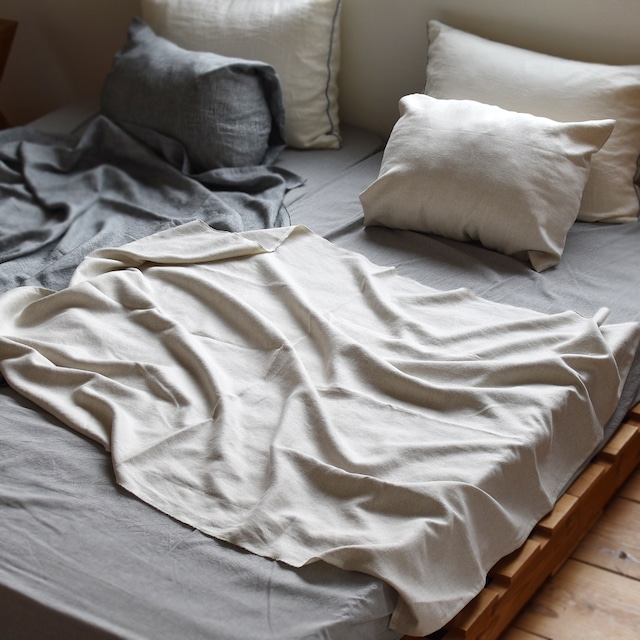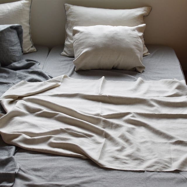 日本製のリネンーシルクハーフケットは、近江で織られたリネン/シルクの混合生地を使用しており、サイズは幅105cm×長さ150cmです。
