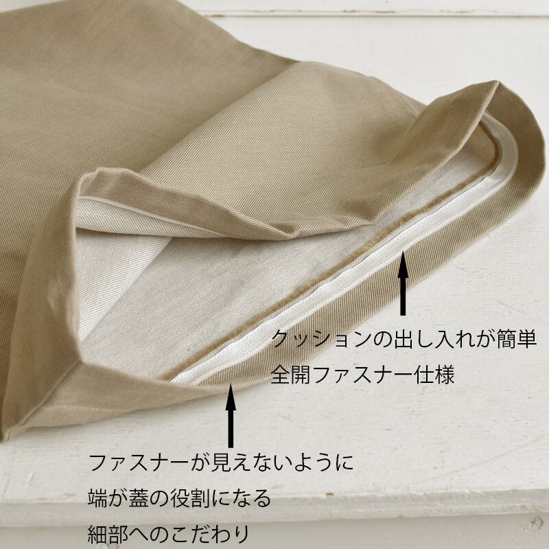 環境にやさしい和紙の糸「OJO+」と綿の撚糸を使用した中肉厚のツイルダンガリー生地を使用したクッションカバー。